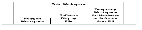 The workspace handler does its addressing and word counting in real words. The workspace area must be large enough for all the concurrent workspace needs of a given program. For example, an application where polygons will be stored, a software display file used and area filled, might have a workspace area which would appear as shown below.